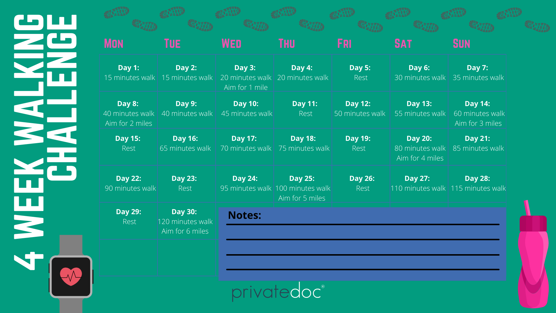 You can also download this handy four week walking challenge schedule here to help you on your journey.